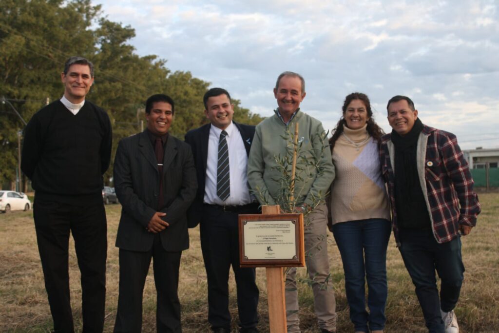 El acto se llevó a cabo en la intersección de las calles Papa Francisco e Ignacio Crespo donde hubo palabras alusivas, la plantación de un olivo e interpretaciones musicales.